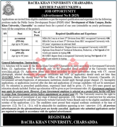 Vacancies Details Of Bacha Khan University KPK Jobs 2025