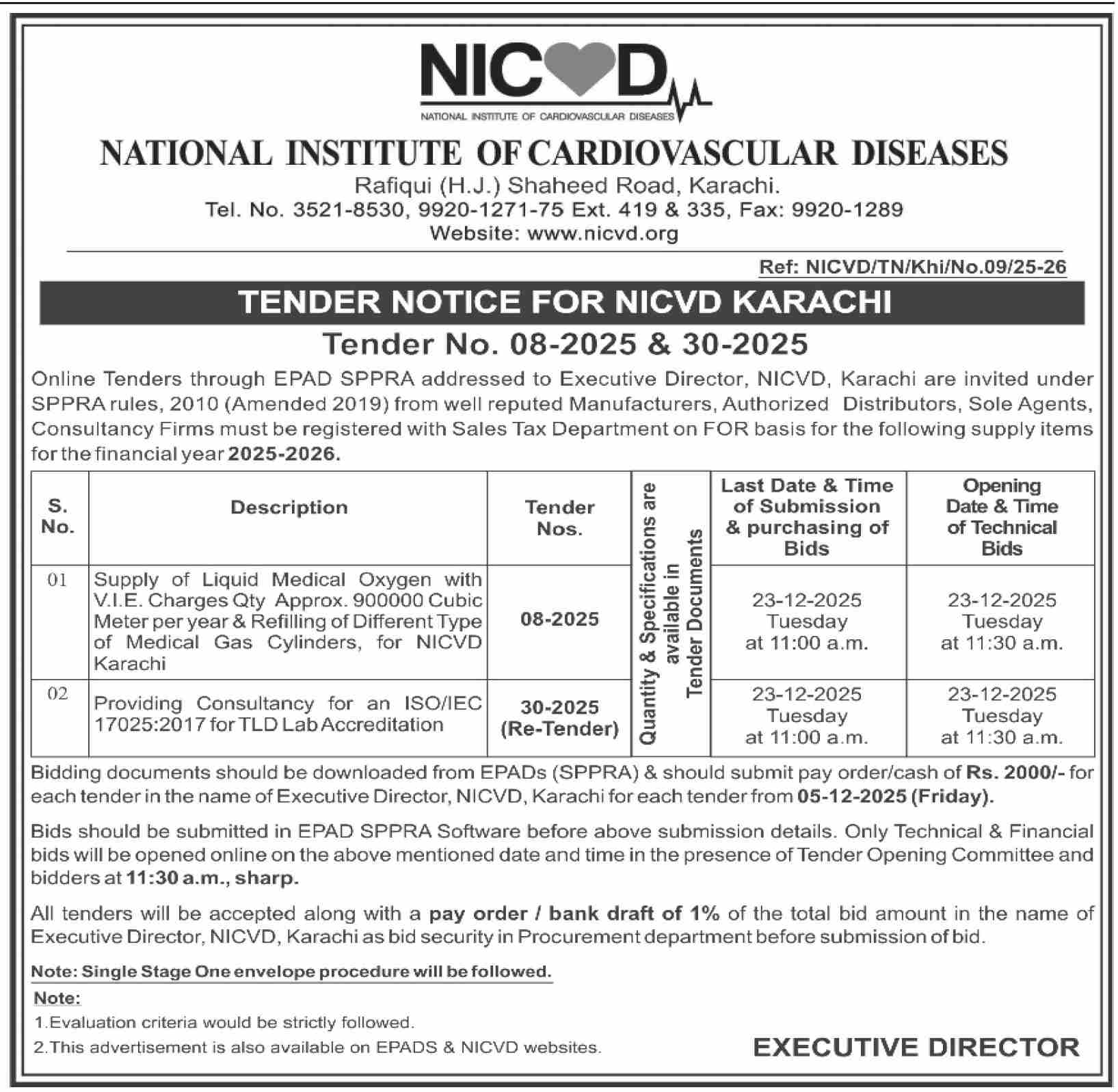 Candidates, if you are seeking National Institute of Cardiovascular Diseases Jobs 2025 in Karachi, yes. Then it would help if you tried to complete the National Institute of Cardiovascular Diseases Jobs because here you can easily apply for this vacancy: Online Tenders.
